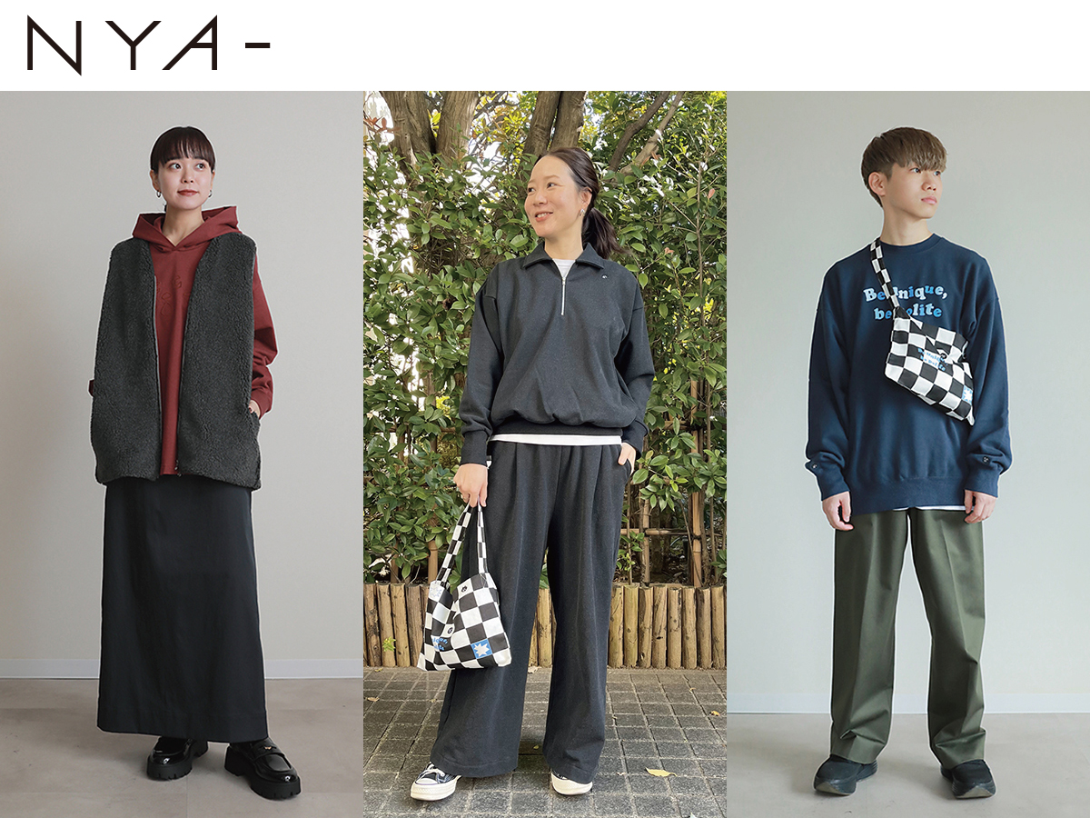 いよいよ冬本番。シルエットや素材にこだわったNYA-のアイテムで、エフォートレスなスタッフスタイリングをご提案します。