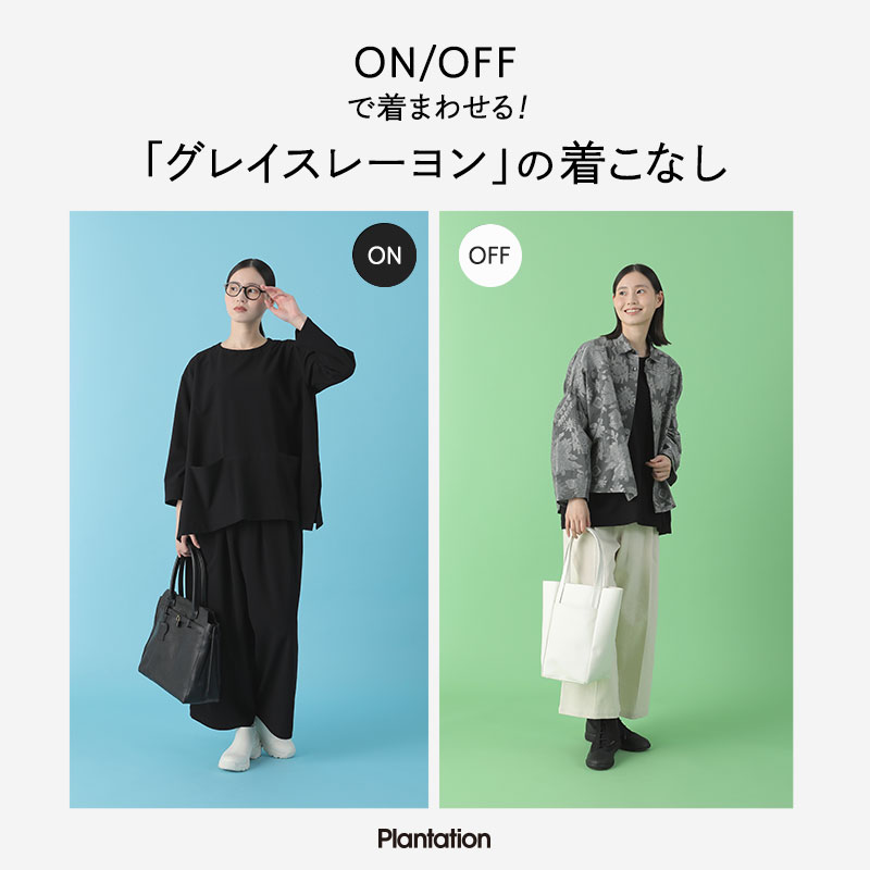 Plantation ON/OFFで着まわせる!「グレイスレーヨン」の着こなし