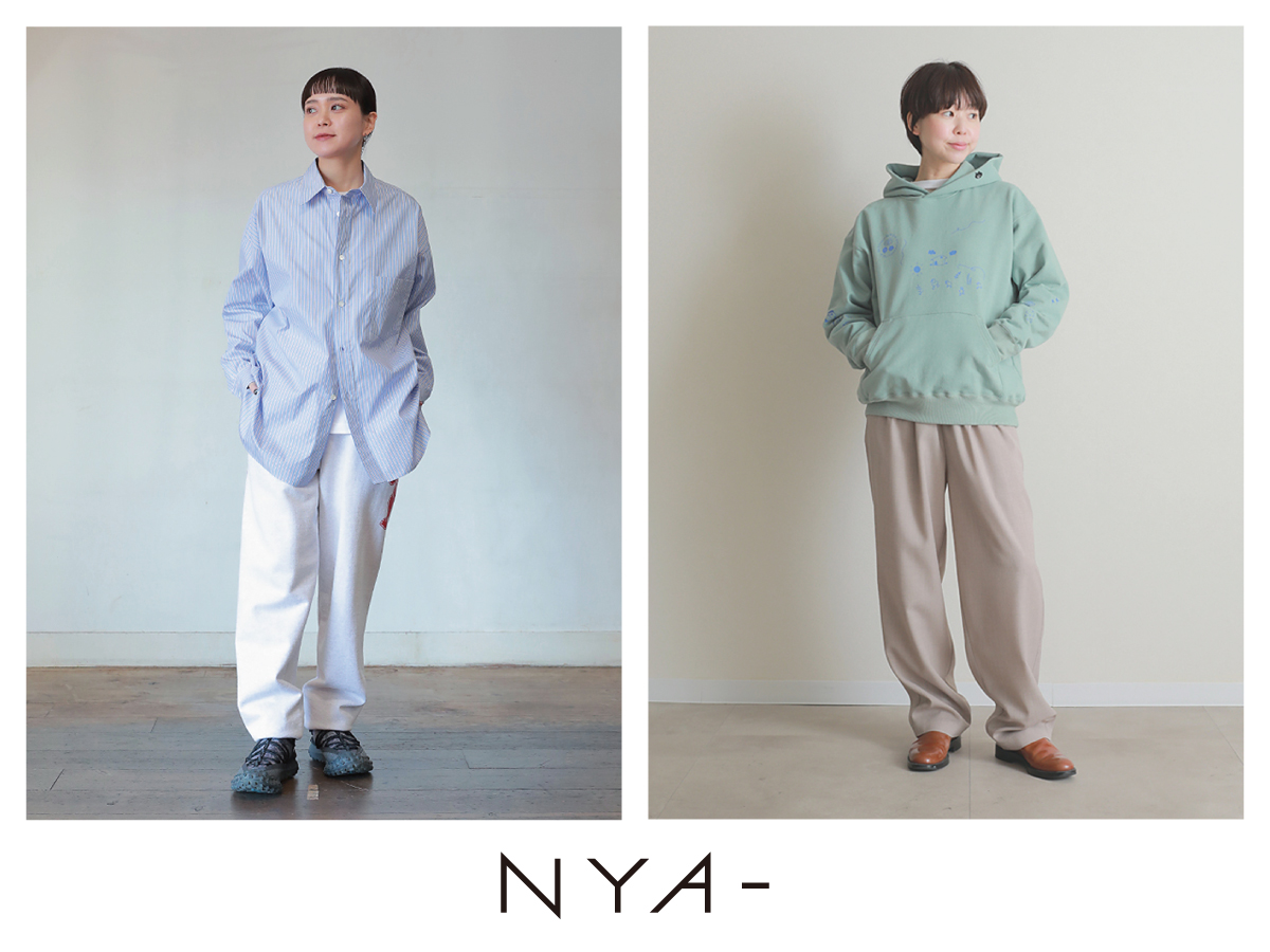 aimi odawara 描きおろしのグラフィックを、NYA-らしいシルエットに落とし込んだコラボレーションアイテムのポイントをご紹介いたします。