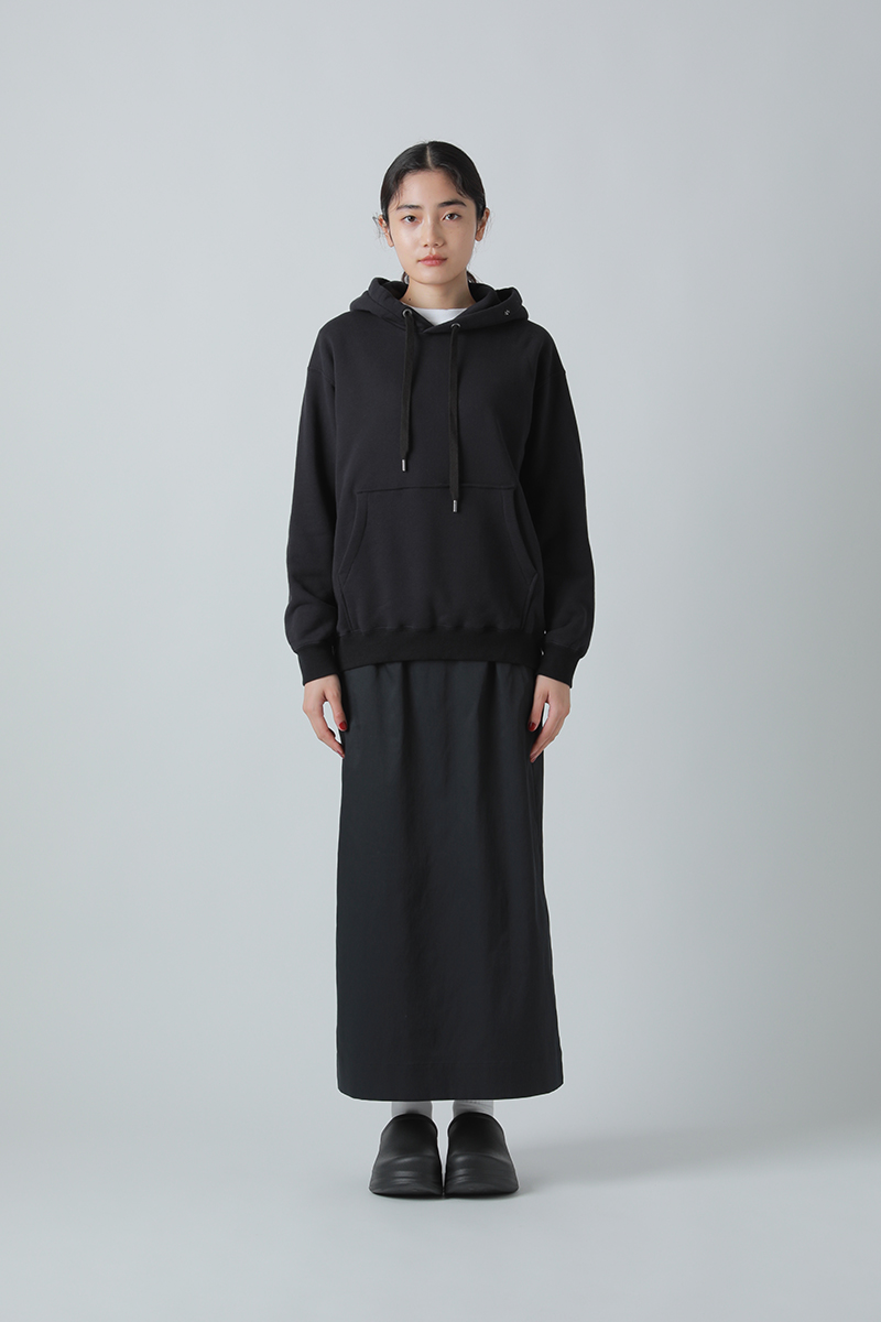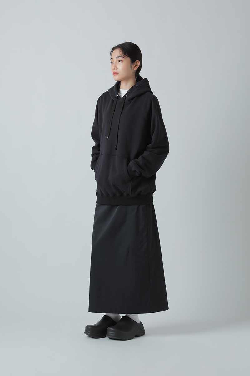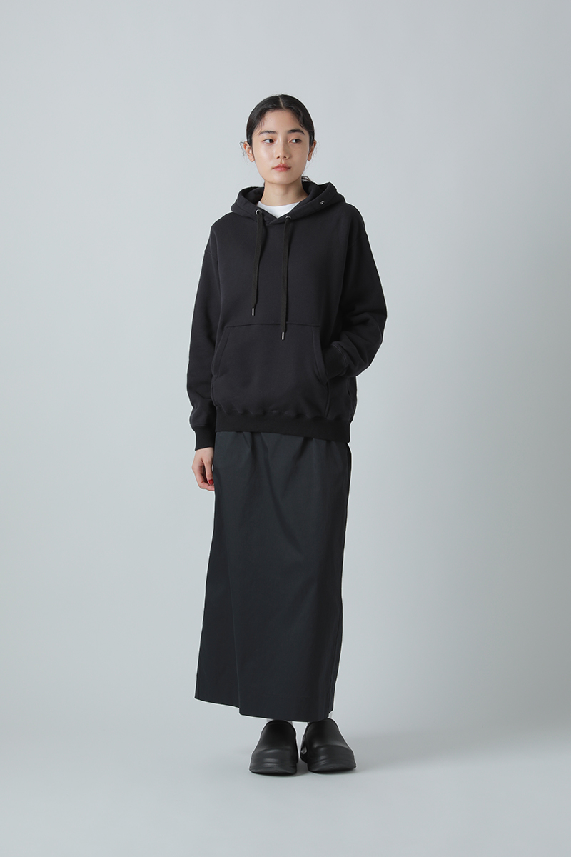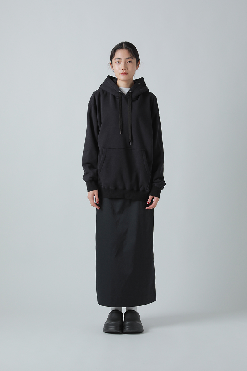 度詰のヘビー裏毛を使用したフーディは飽きのこないベーシックなシルエット。