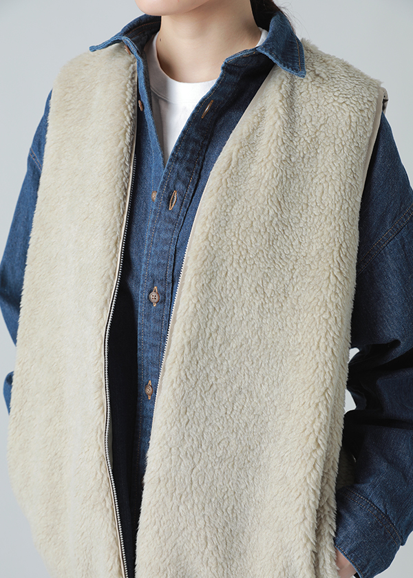 いつものコーディネートにさっと羽織るだけで華やかになるボアベスト。