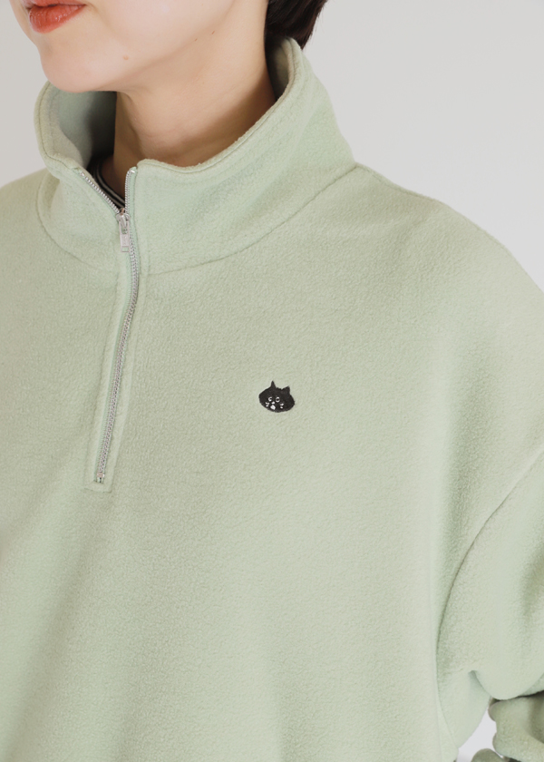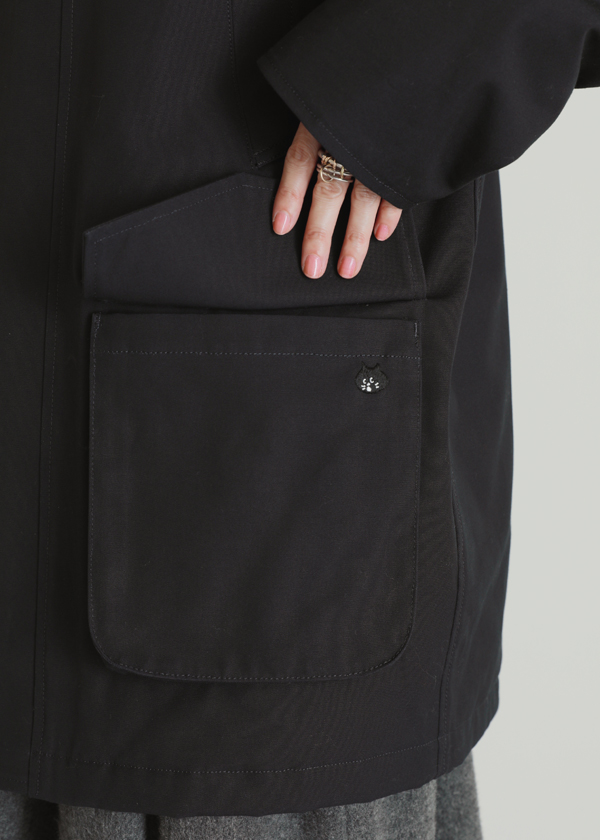 左胸にNYA-の顔パーツをサガラ刺繍で施し、アクセントに。