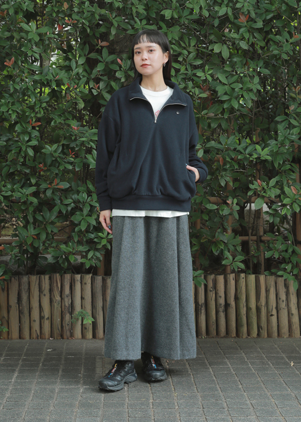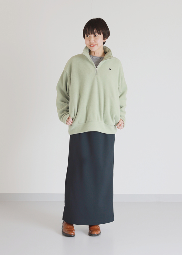 柔らかい裏毛素材でアウターとの重ね着もしやすく、春先まで楽しめる一着。