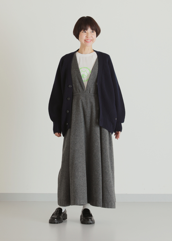 腰回りが隠れる丈で暖かく、本格的に寒くなる前にアウター感覚で楽しめるカーディガン。