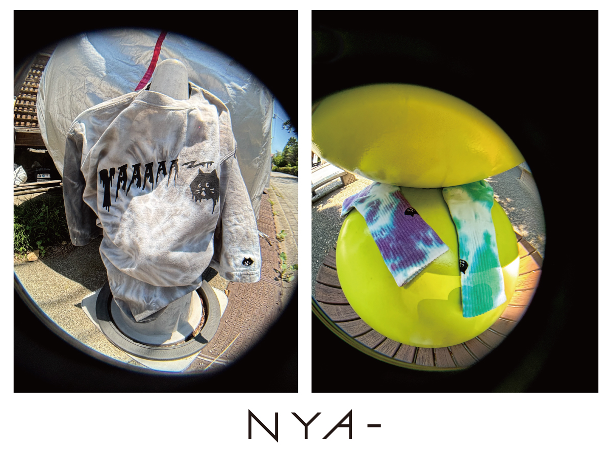 染色アーティストのYUKIさんとNYA-のコラボレーションアイテムが7月に発売。ヒッピー×ストリートの唯一無二のタイダイ染めがNYA-のアイテムを華やかに彩ります。また、タイダイ染めの楽しさを感じていただけるワークショップイベントを開催いたします。