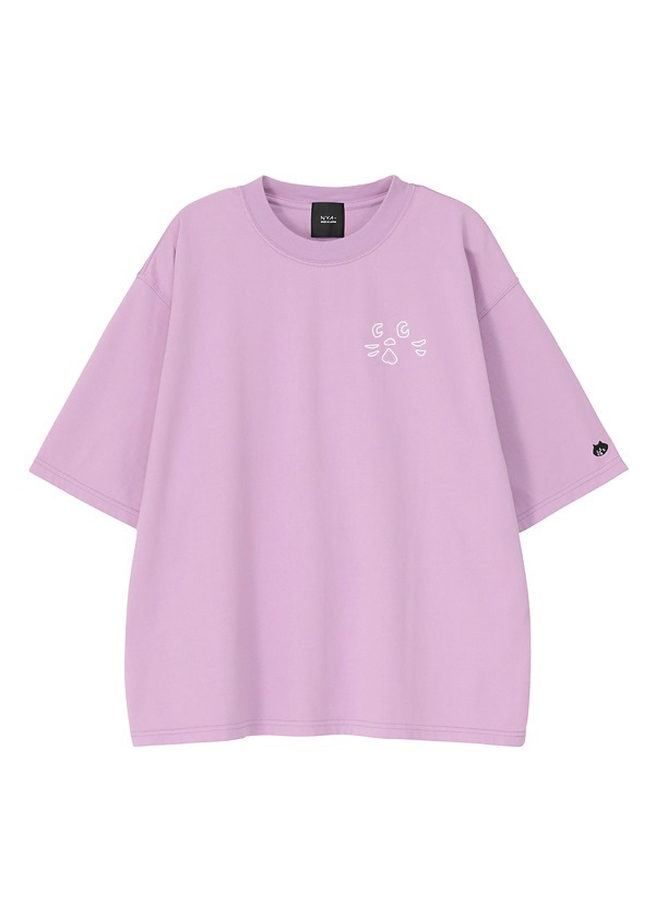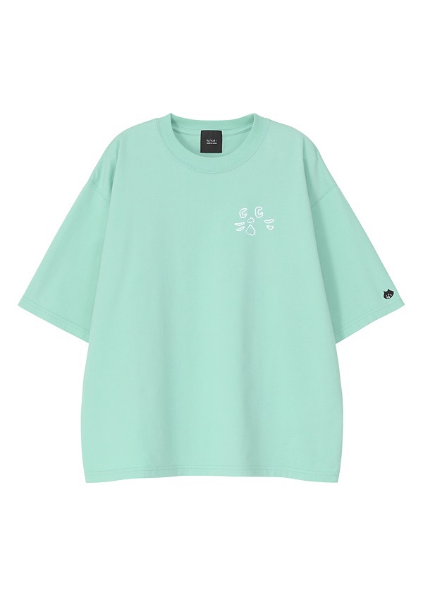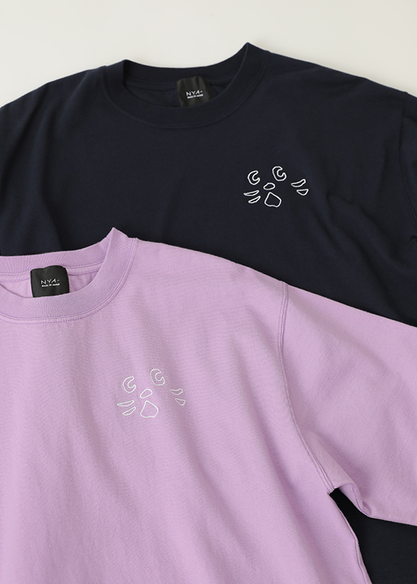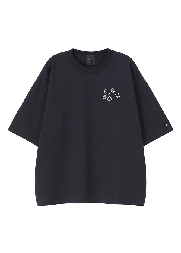 胸元にNYA-の顔パーツ刺繍を施したTシャツ。