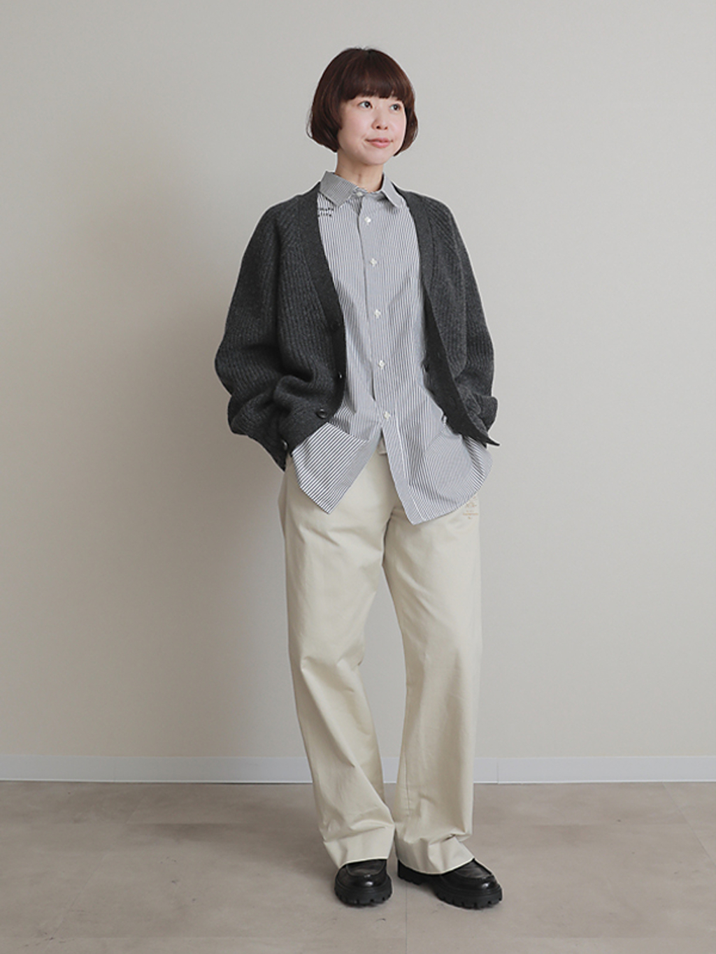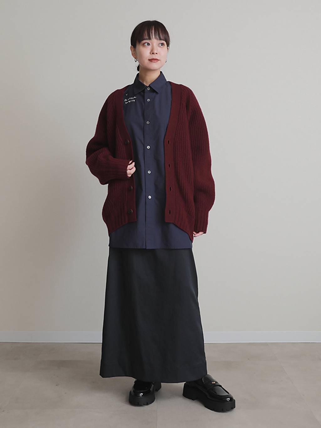 インナーにTシャツを合わせて首や裾から覗かせるスタイリングがおすすめ。
