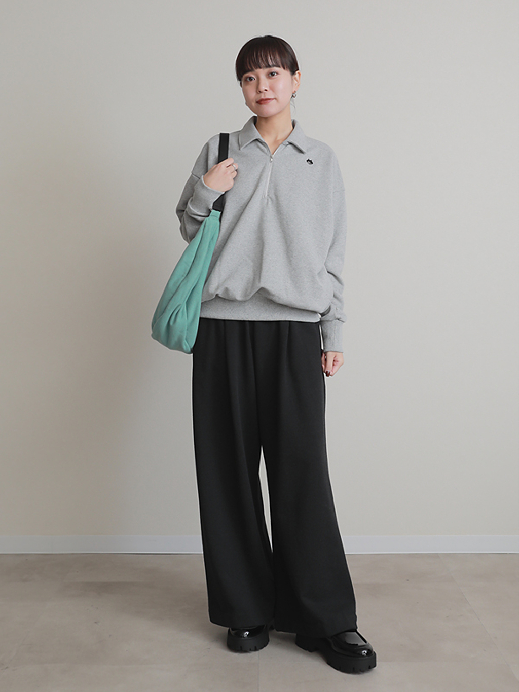トップスに変化を出したいときにおすすめのハーフジッププルオーバー。