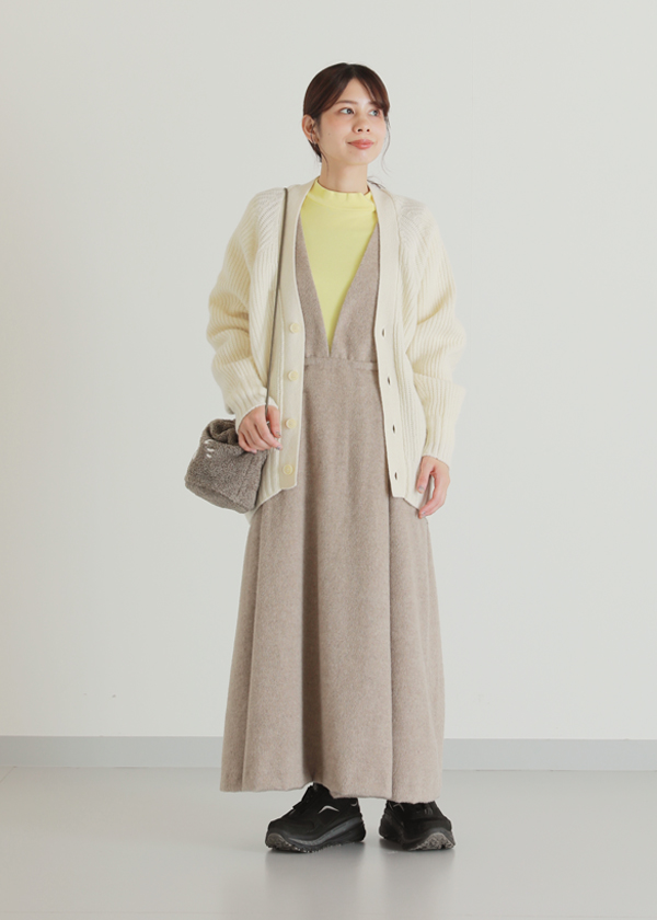 今の季節は1枚で、寒さが増してきたらニットのインナーやカーディガンを重ねたり、とロングシーズンで楽しんでいただけます。