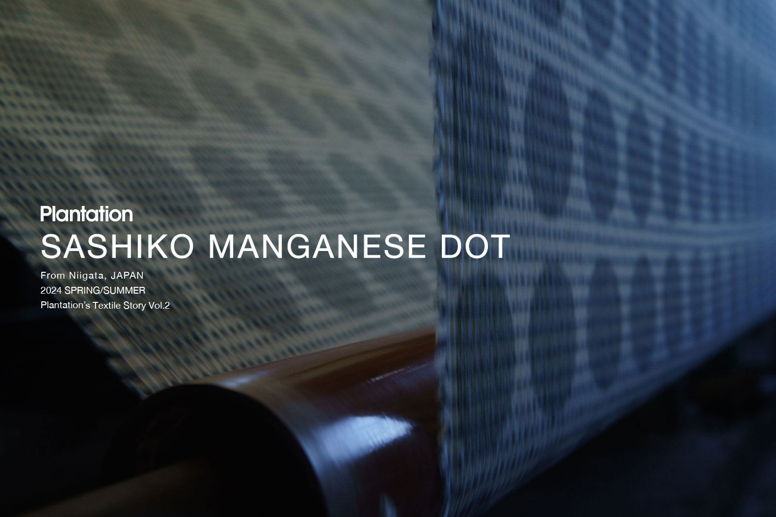 世界で唯一、新潟・見附の職人だけが手がける「マンガン染」と日本に古くからある伝統的な刺繍「刺し子」を組み合わせて生み出された「サシコマンガンドット」。伝統的な手法を駆使し、全く新しいモダンな表情を持つプランテーションならではのテキスタイルをご紹介します。