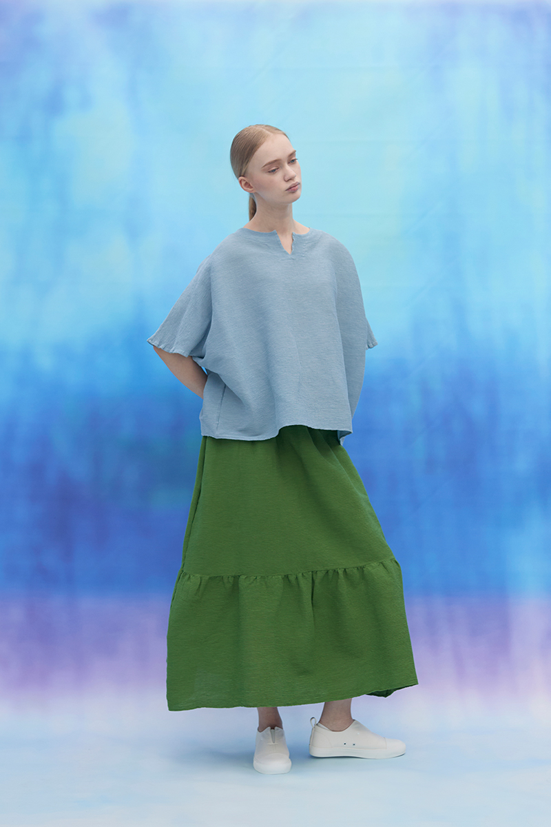 「大切にしているのは、産地や職人の方へ敬意を払いながらプランテーションらしい発想を軸に、現代の生活にフィットした軽く、心地よく、またケアも簡単な服をデザインすること。定番になった素材も毎シーズン、プリントや加工を加えることによって、常に新しい表情を提案しています」とデザイナーのサトウエミコは言います。