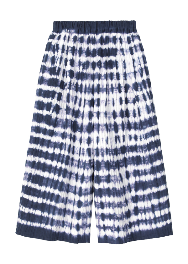 今回、そのコラボレーションの形で展開される「BIZEN WAVE」のワンピースとパンツは、有松絞りの代表的な技法「鎧段絞り」で染色したもの。