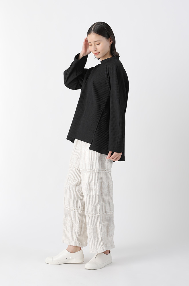 岡山地区のデニム織機で織り上げ、製品加工施す事で生まれたクラフト感あるウェーブが特長の「BIZENガンジーWAVE」