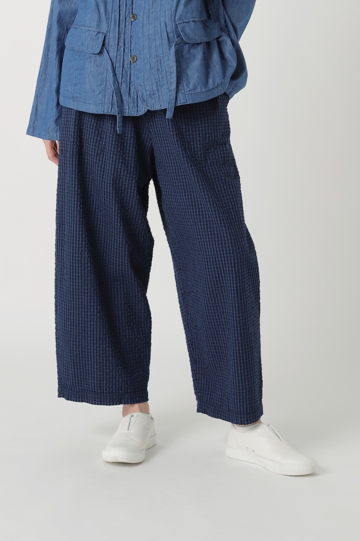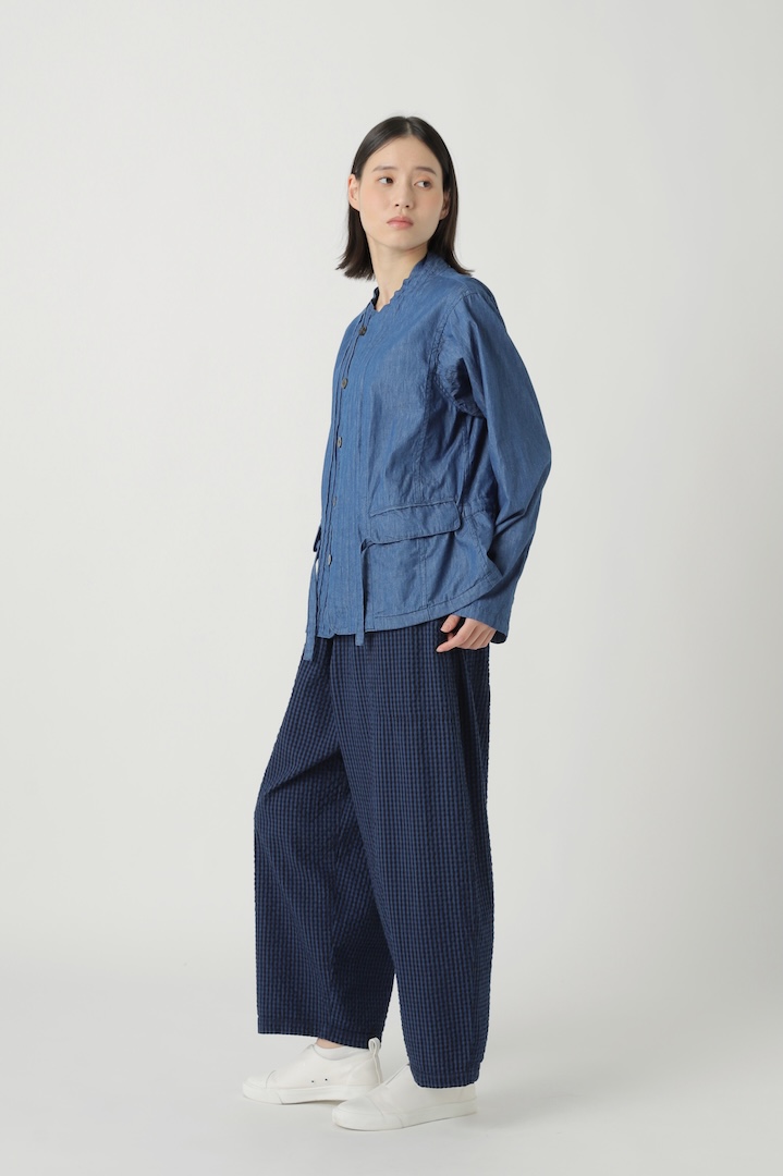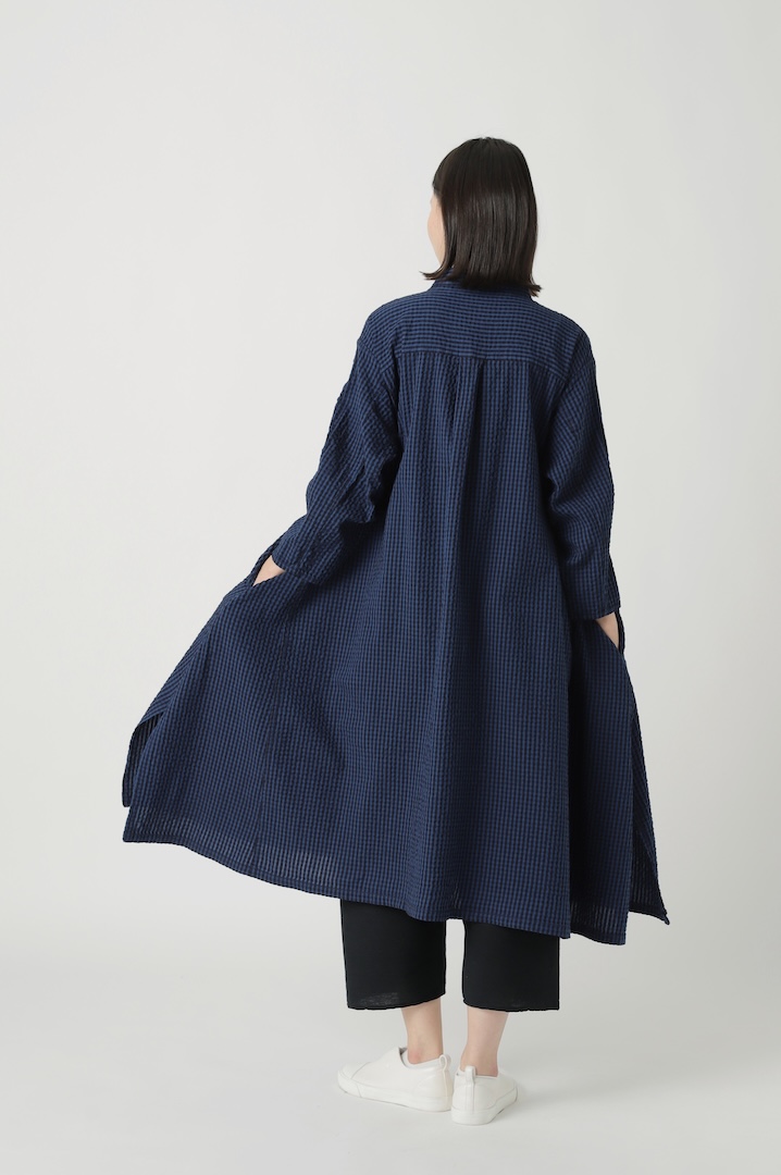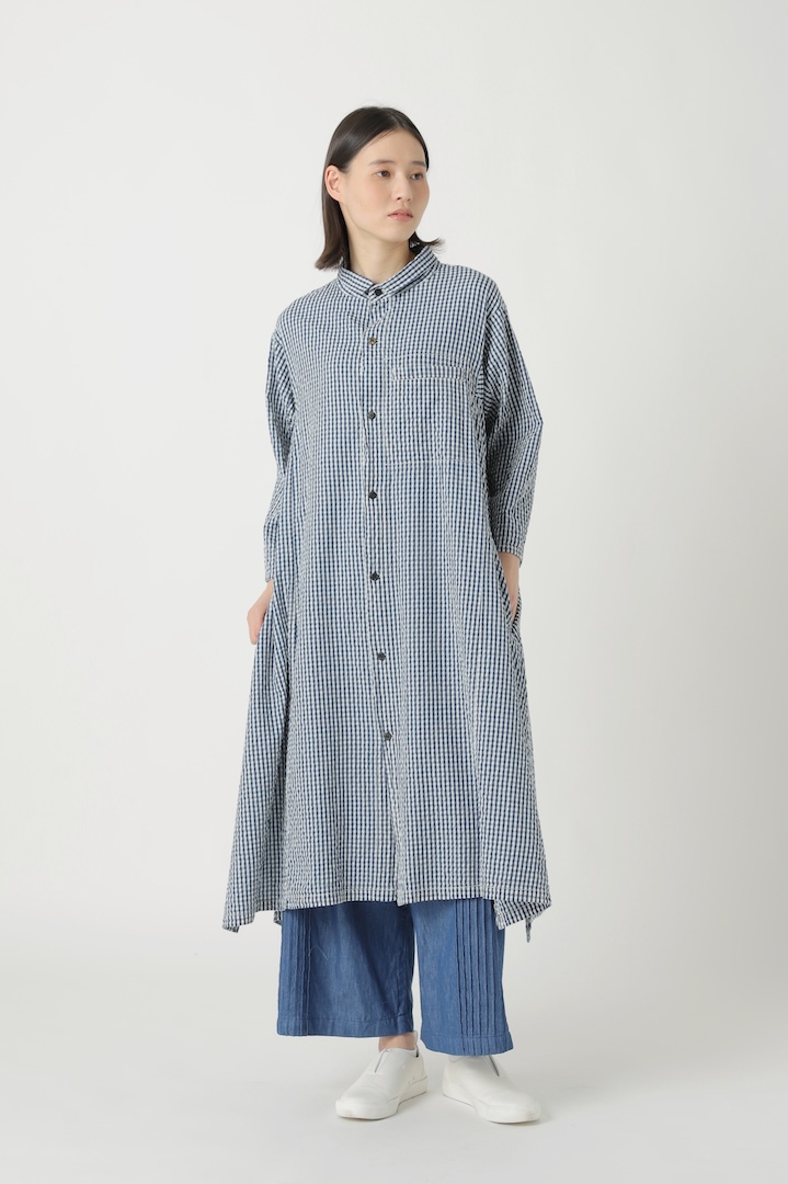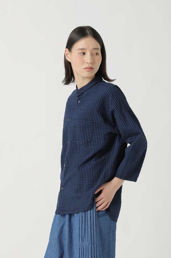岡山産地でピュアインディゴと反応染料を使い織り上げたオリジナルのギンガムチェック。