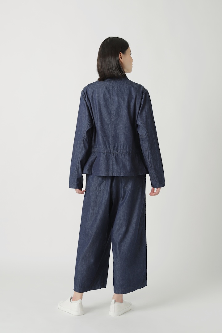 デニム特有のカジュアルさの中に、整ったラインが生まれることで、どこか品のある表情に。