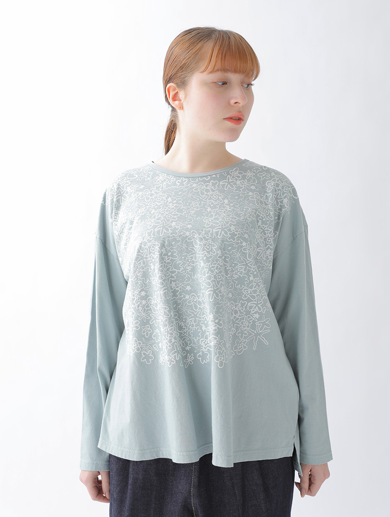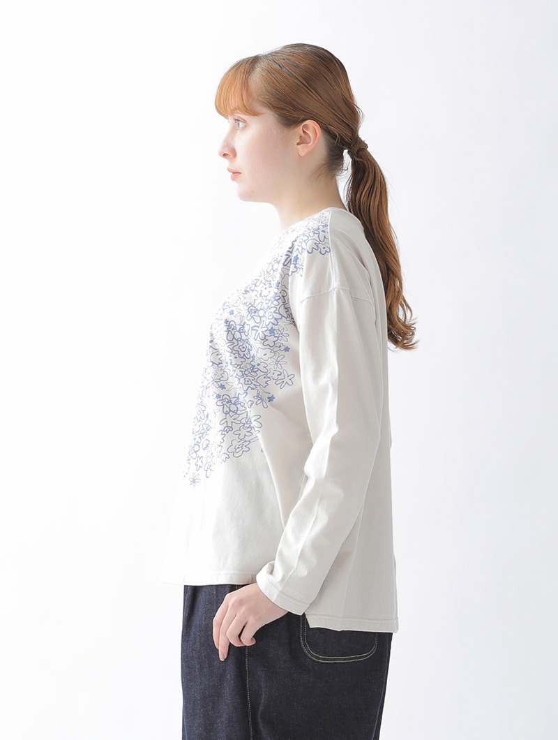 一枚で着たり、ワンピースに重ねたり、シーズンを問わずコーディネートに活躍するTシャツです。