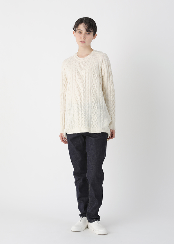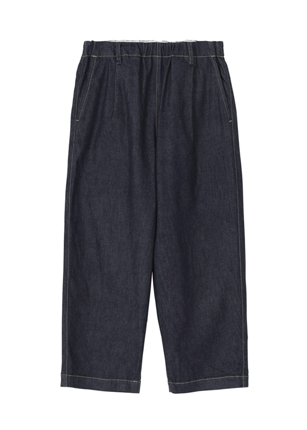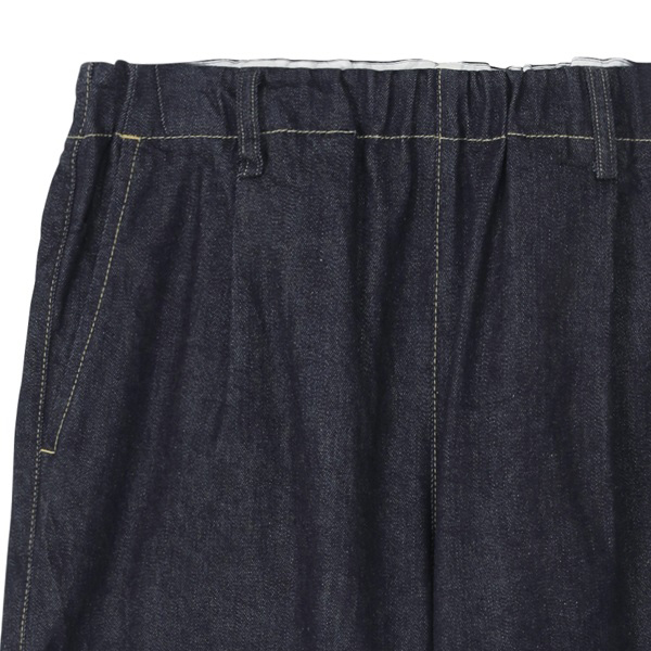 タテ糸に自然なムラ感のある糸を使用した、程よいフィット感が魅力のストレッチデニム素材。裾に向かってゆるやかに細くなるテーパードパンツは、着る人も合わせるトップスも選ばない万能選手です。