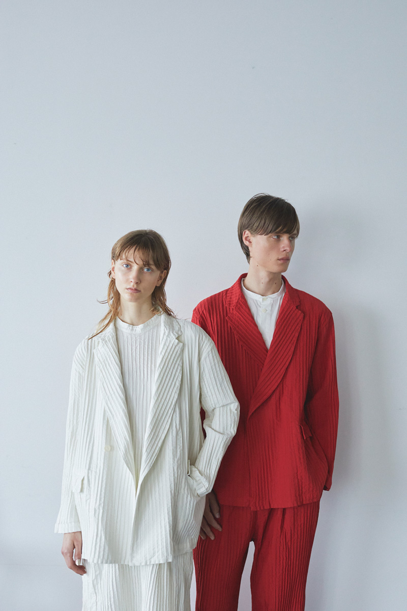 天然繊維が定着し、ご愛顧いただいているプランテーションにとって、ポリエステル素材の採用は大きなチャレンジでした。しかし、一度袖を通していただくと、その軽さとケアの手軽さ、そして一般的なポリエステルとは一線を画す風合いの良さから、多くの支持を集めています。
