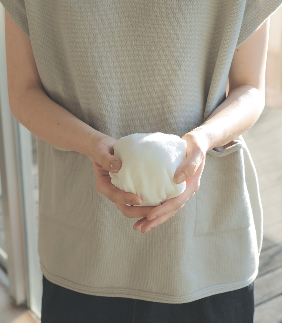 「まるで羽衣のよう」と称されたこともある透けるほど薄くて軽くて柔らかいエジプトコットンはとても優秀なインナー。着ていないかのように薄くても汗はしっかり吸収してくれます。ふんわり編みたてていることで空気を含みあたたかみもあります。