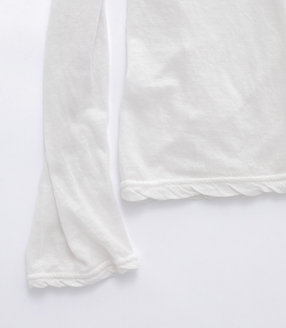 コットンの中でもエジプトのナイル川流域で採取されるコットンは繊維が長く細い繊細な糸を紡げます。その糸を使ってふんわり編み上げることで抜群の着心地のカットソーを実現しました。