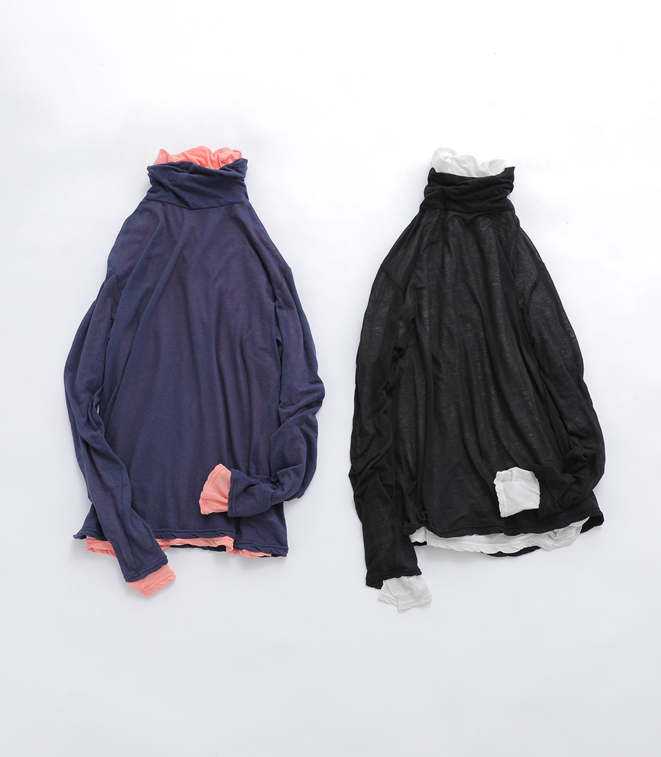 ボディーは1枚仕立てで着心地軽く、タートルネックの襟部分はダブル仕立てになっていて、ストレスなく着こなしていただけます。ニットやカットソーと合わせることで、気になるチクチク感からも首元をやさしく守ってくれます。