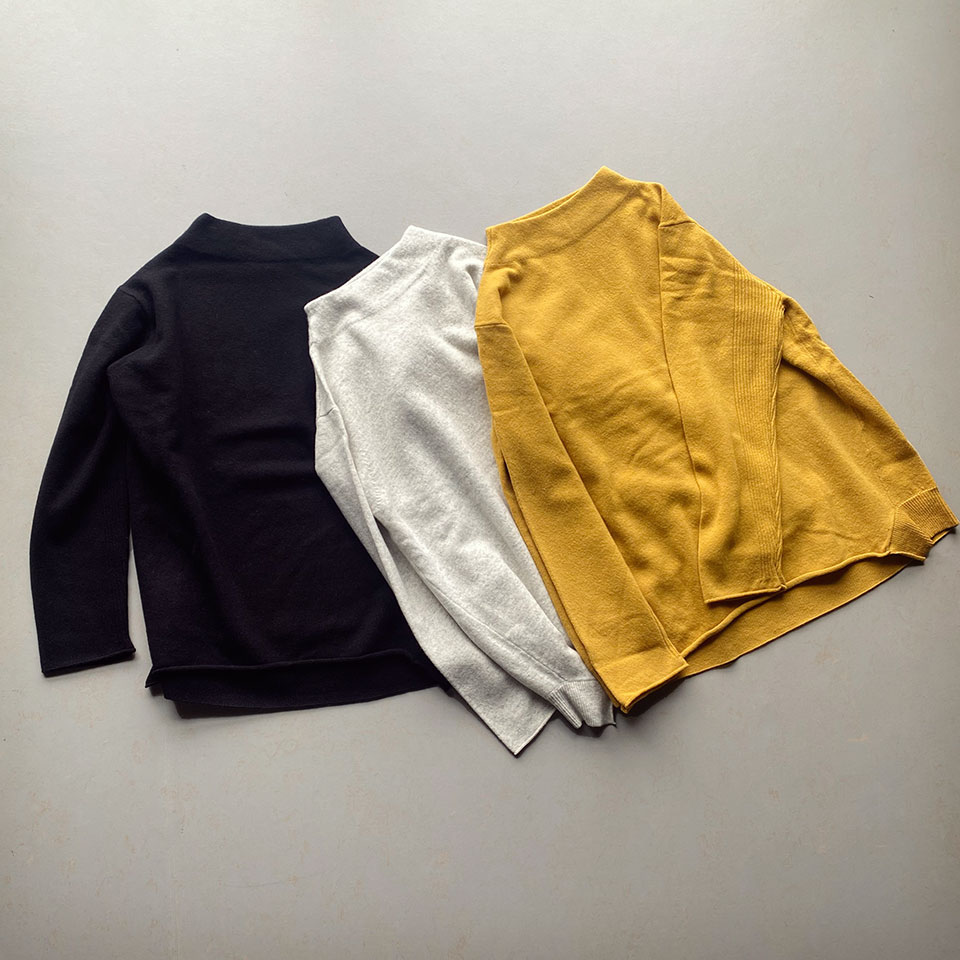 定番色のグレー・ブラックに加えひときわ目を惹くキイロもオススメ。寒くなってきたこの時期に一枚いかがですか?
