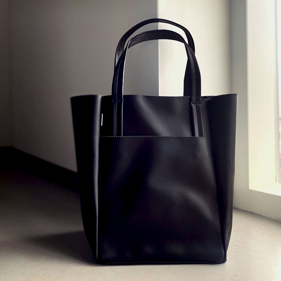 Commentプランテーション定番のフェイクレザー素材を使用したトートバッグです。フェイクレザーなので軽量で本革よりも扱いやすいアイテムです。普段Mediumサイズを使っていますが、お弁当やタンブラー、iPad等が入るたっぷりのマチがお気に入りです。