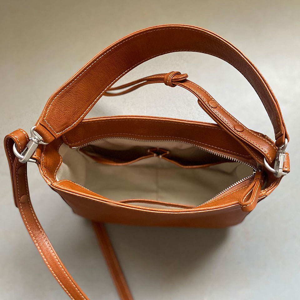 ポケットは前面と背面、内側に2つ計4つ備わっているので持ち物の仕分けがしやすいのもうれしいポイントです!ぜひ一度手に取ってご覧になってみて下さい。