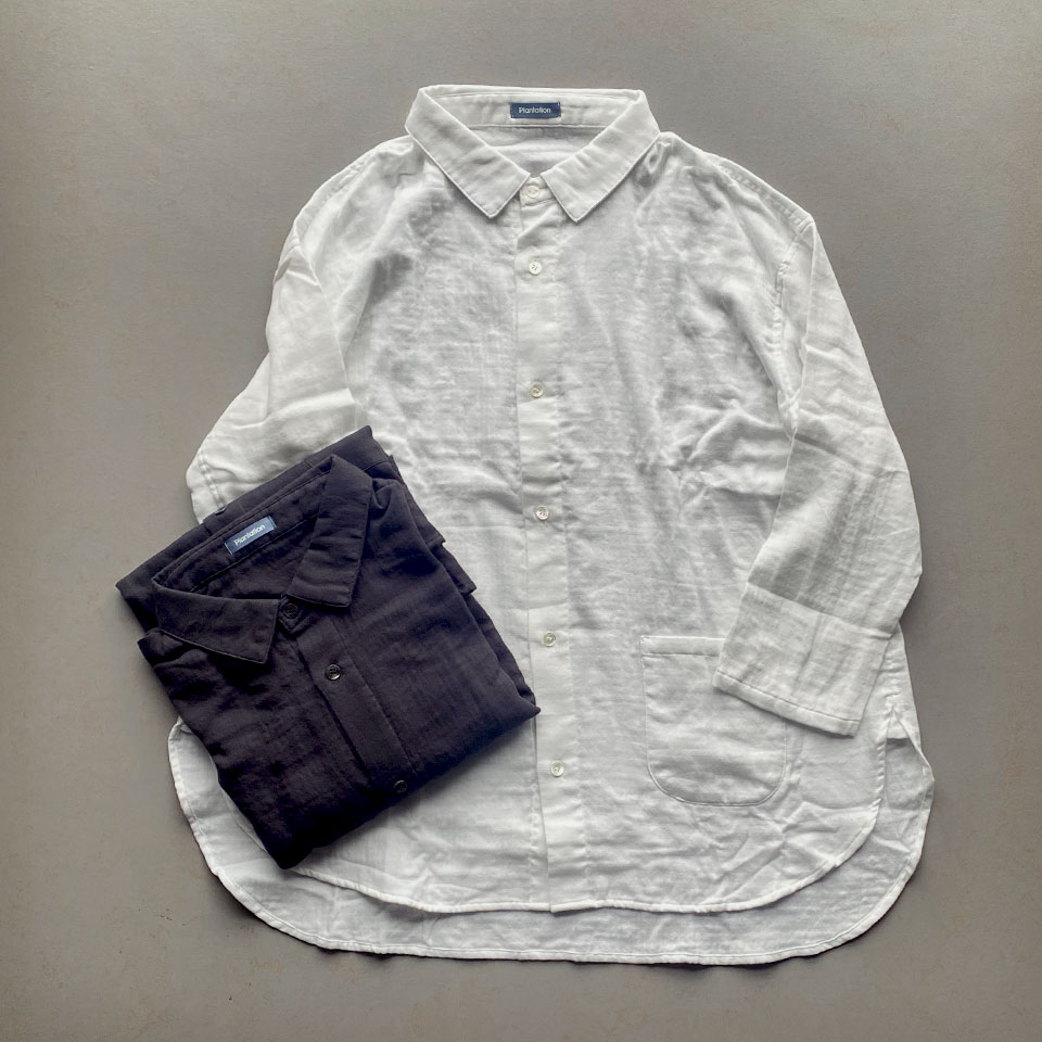 Commentウチノタオルと協業した、肌触りと着心地が抜群のシャツです。一枚着としてはもちろん、上からはベストやニットを、下にはタートルインナーなどを重ね着することで、空気を含ませ保温し、冬でもあたたかく過ごしていただけます。ガーゼの素材感がここちよく、やみつきになる一枚。