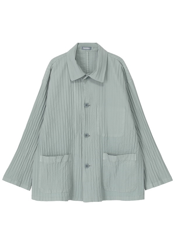 リサイクルポリエステルを使って織り上げたジャケットはとても軽く、イレギュラーなWAVE状の凹凸が特徴的な一着。シャープさのある素材でありながらカジュアルなスタイリングにも馴染むので、幅広いシーンで活躍します。