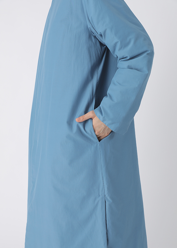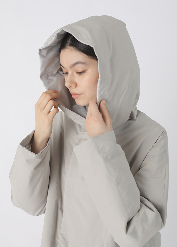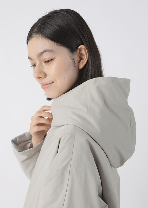 1枚で2通りの雰囲気を楽しめるリバーシブル仕様。ノーステッチの綿ポリエステル生地でシックな印象の表地に対して、裏地はナイロン生地にステッチが入っていてよりアクティブな印象を楽しめます。汚れが気になった時に気軽に洗えるウォッシャブル素材。毎日着たいものは清潔に保ちたい。アウターにはうれしいイージーケアなコートです。