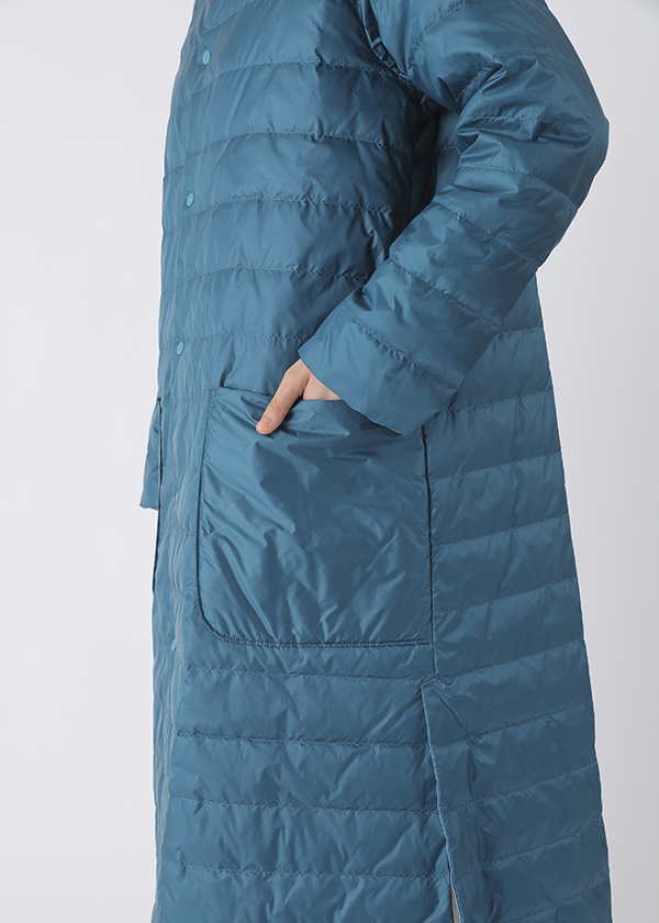 着心地のよさだけでなく、動きやすさにもこだわった「ライトリバーダウン」。サイドにはスナップボタンで開け閉めできるスリットがついているので着こなしのアレンジはもちろん、足さばきよくアクティブにすごしていただけます。