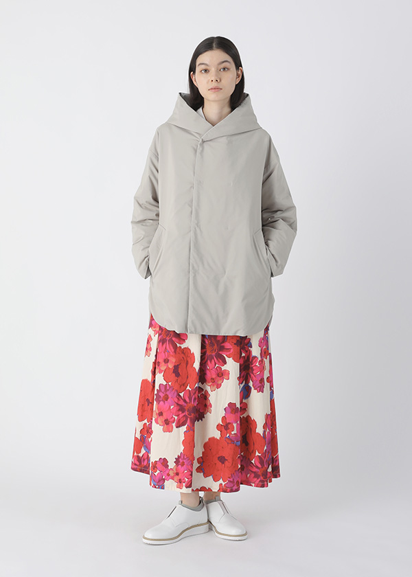 今シーズンの新型ブルゾン。ノーカラーコート同様のうれしい便利なポイントもありつつ、たっぷりとした身頃と大きめのフードがあたたかく包んでくれます。