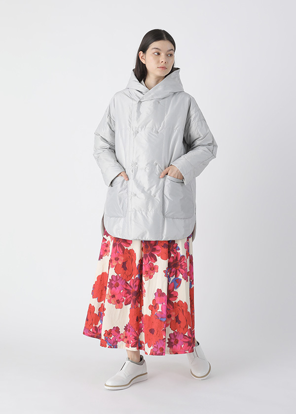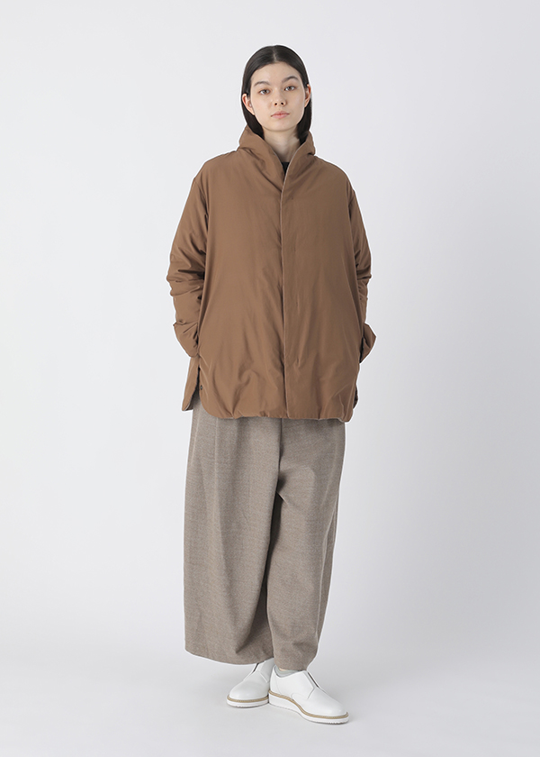 ヘチマ襟のスタンドカラーで首元をすっきりと見せながらも防寒対策にもなるデザイン。柔らかい襟のラインで、ストールなどの小物もストレスなく合わせていただけます。