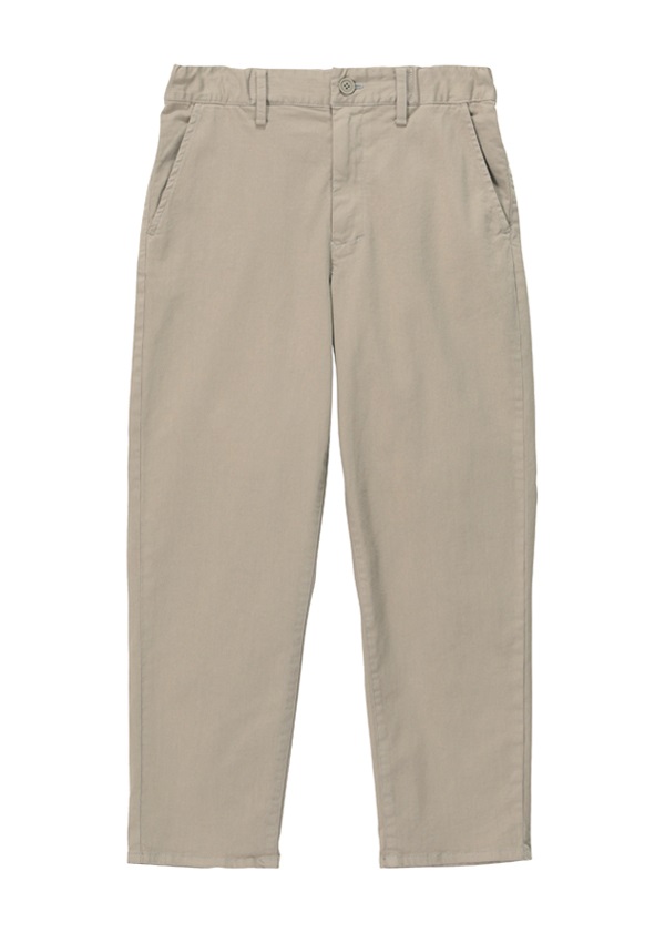 ライトグレーの新作パンツはシルエットもすっきり。いつものニットスタイルもさりげなくきれい目にまとめてくれる。