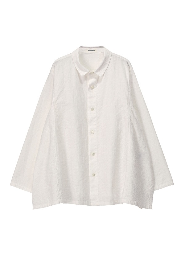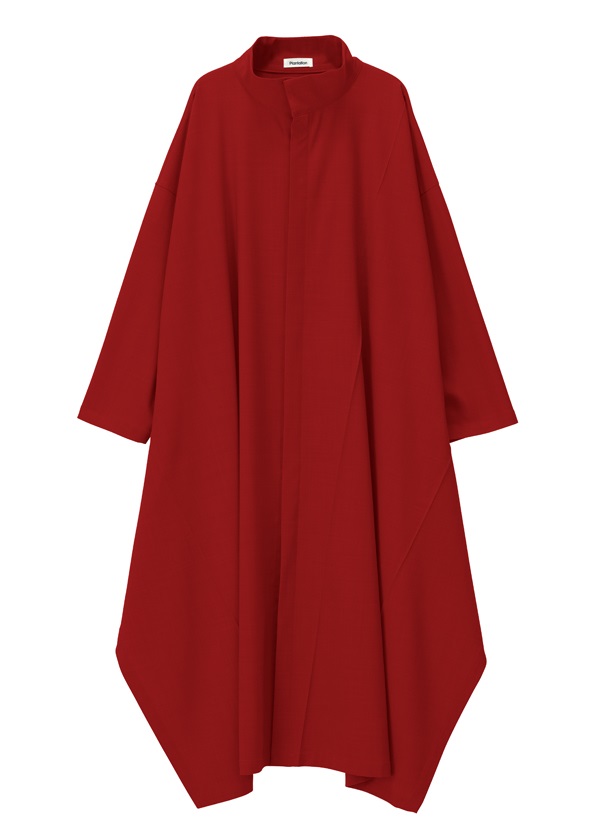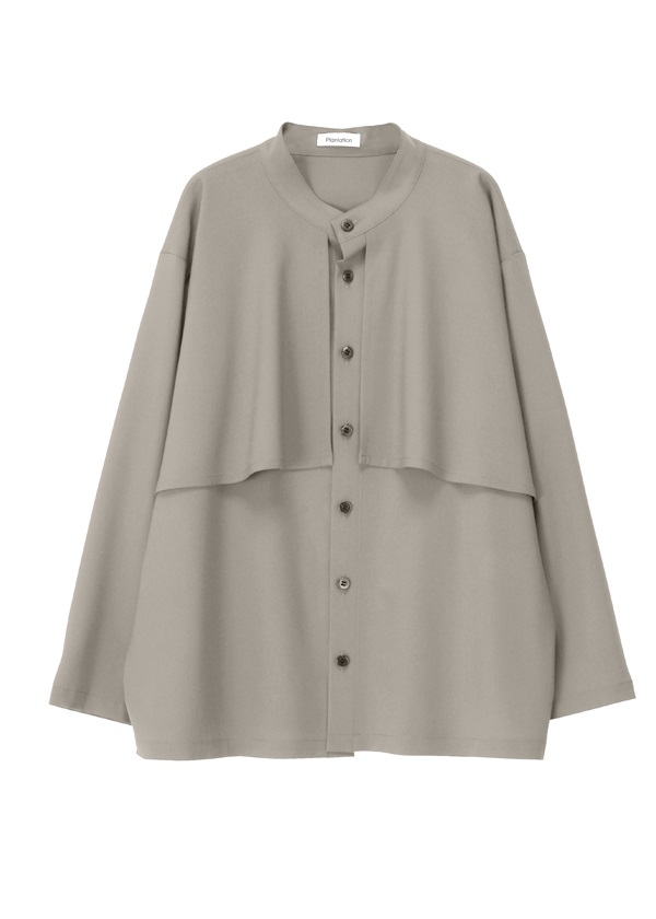 ケープをまとったようなデザインが印象的なスタンドカラーシャツ。寒い季節はカーディガンをさっと羽織って、あたたかくなれば一枚着を楽しんで。