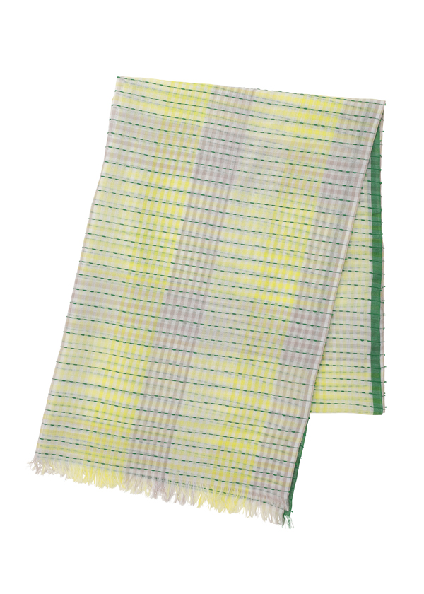ナチュラルなイエローカラーが映えるコーディネート。リネン100%のすずやかなホワイトのパンツは、ワイドシルエットでさらりとした着心地がうれしい1枚です。