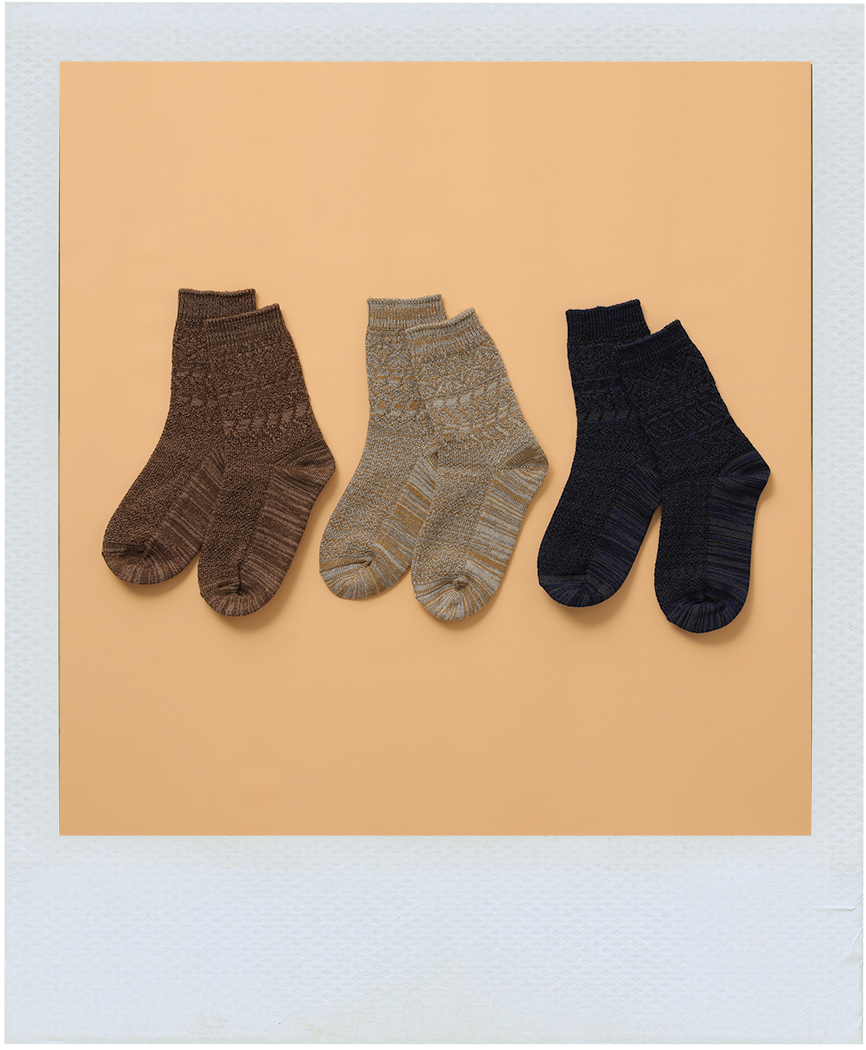 編み柄が心くすぐる足元に。