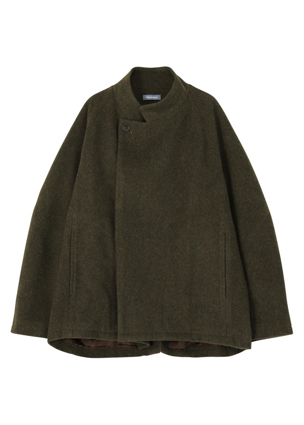 いくつかの繊維が混じりあってできるTOP調のメランジ感がある色が特長のふんわりと軽くあたたかいアウターです。