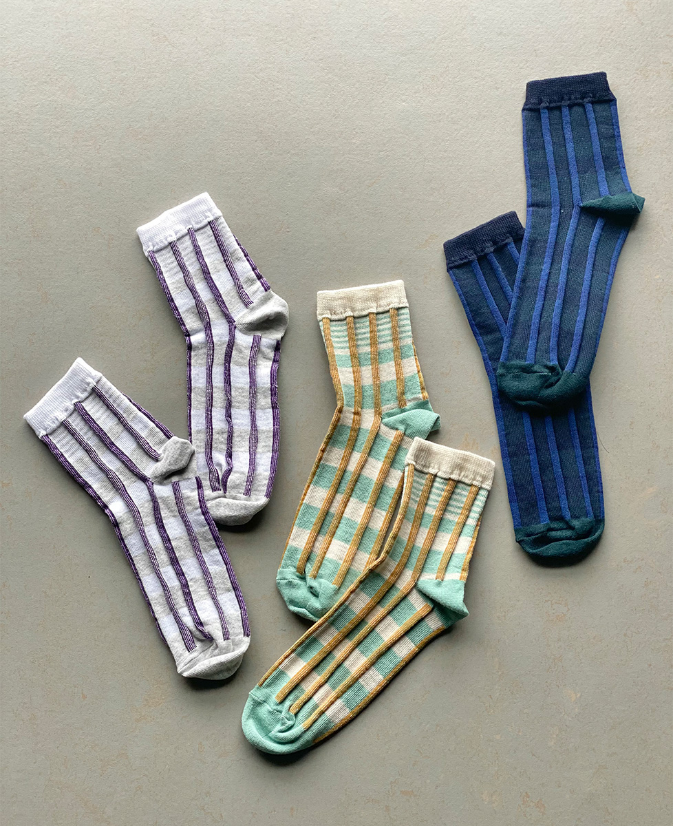 足元を彩るライトカラーのチェック柄2色とコーディネートを引き締めるダークカラーのチェック柄、全3色から選べます。