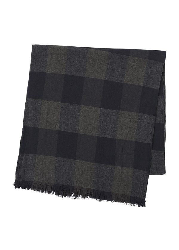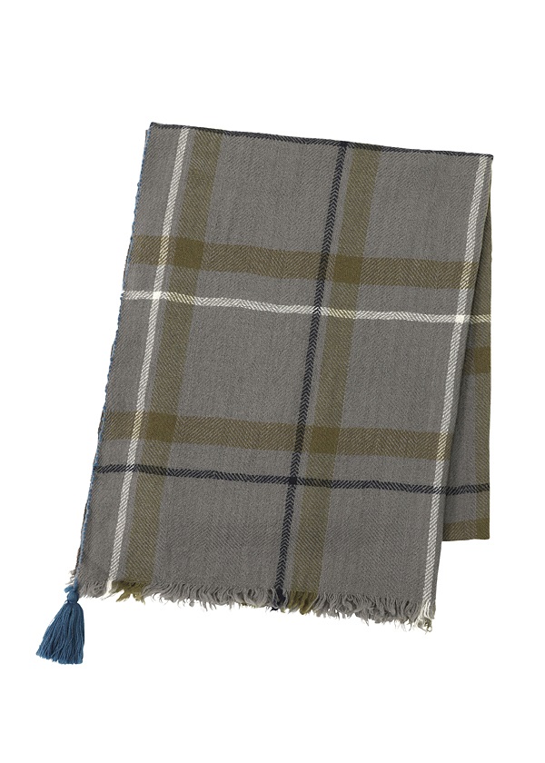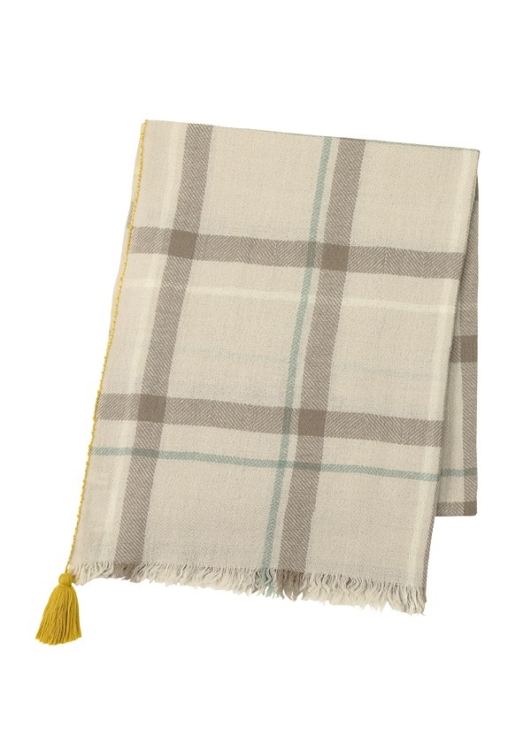 ウォームチェックストールは柔らかくかさばらないのでニュアンスを出しやすく、タッセルがアクセントにもなります。