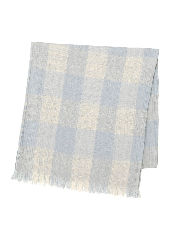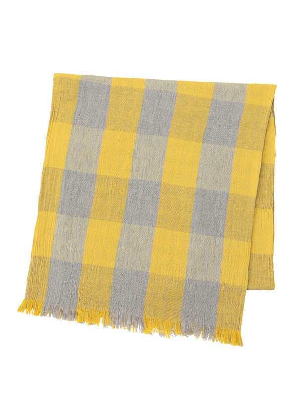 コンパクトで異なる柄の組み合わせが面白いチェックYOORYUUストールは、2種類の柄が見えるように少しねじり、前で結ぶのがおすすめです。