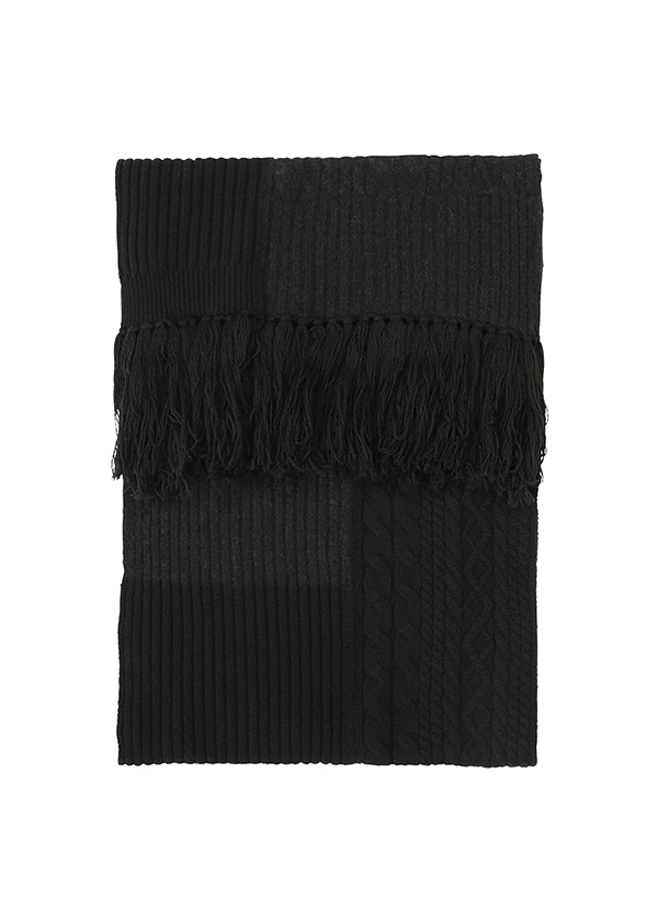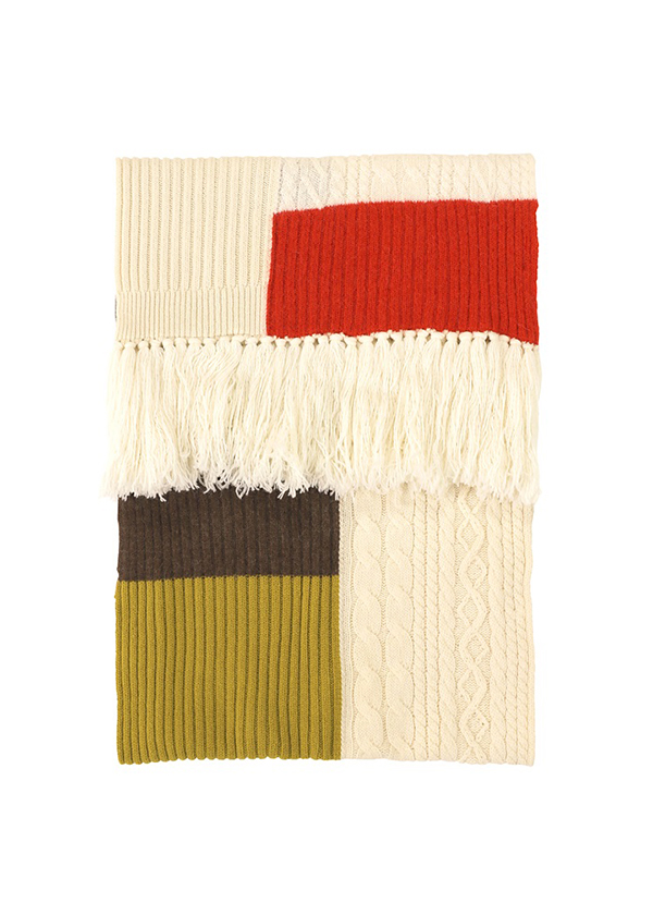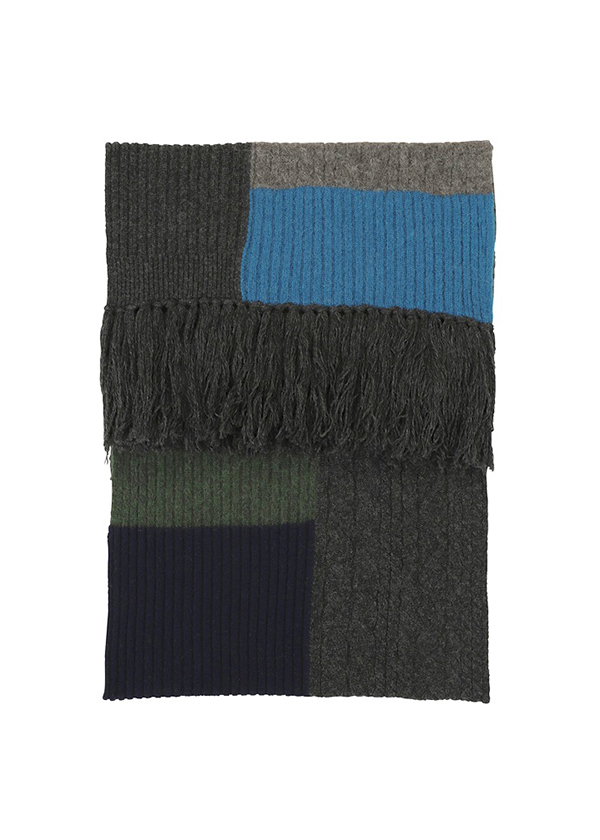 大判で程よい厚みがあるブロックインターシャは存在感抜群。安定感があるのでケープのように巻き付けられるのも嬉しい。