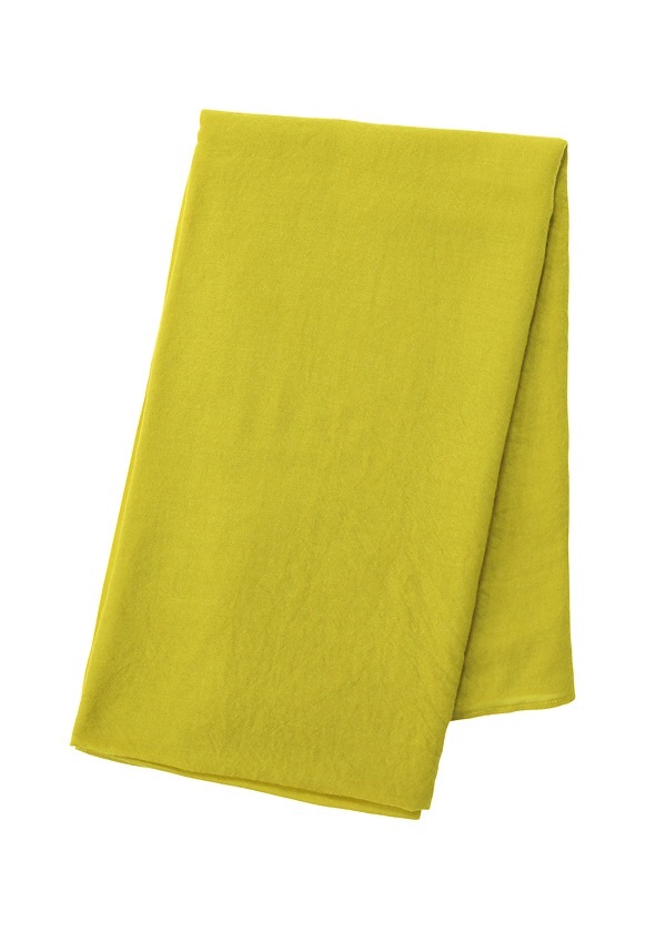 とてもやわらかでほどよいとろみがあるカシミヤシルクストールは、リボン巻きのアレンジでスカーフのように巻くのがおすすめ。