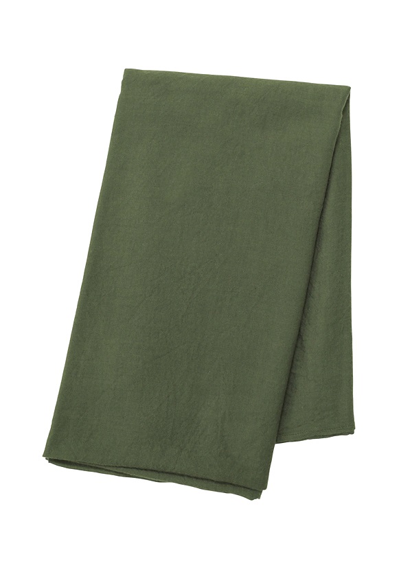 コートを着ていないときでもコーディネートに馴染むので、屋内でも巻いたままで過ごせるストールです。