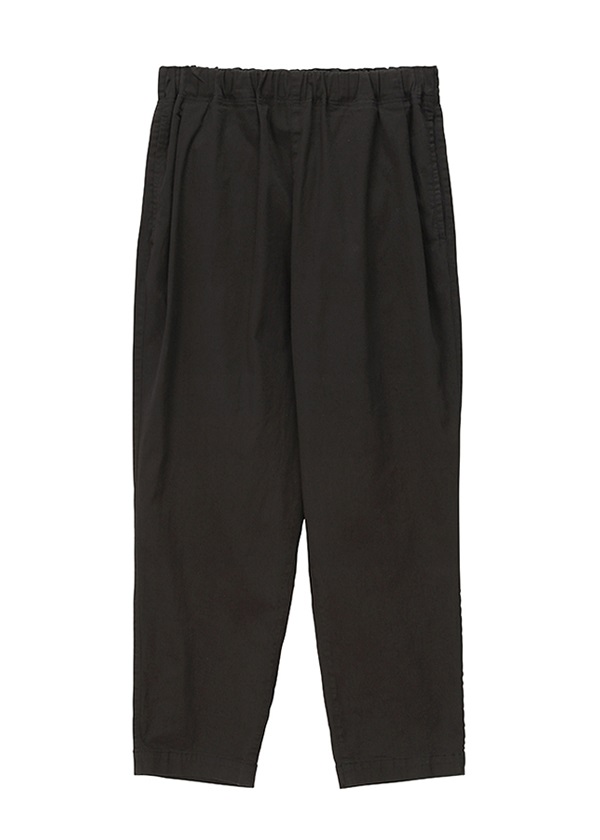 すっきりとした細身のシルエットでも、ウエスト部分のタックで腰回りは適度な余裕がある着心地抜群なストレッチパンツ。股上も深くウエスト周りをすっぽりと包んでくれるので、ボディーラインが出るようなフィット感もなく安心です。裾に向かって細くなるテーパードシルエットで、どんな体型の方でも足がきれいに見えると評判の一品です。