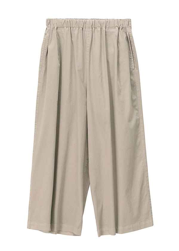 腰回りから裾にかけてゆったりと広がるワイドパンツ。綿ベースの軽やかな素材感で適度なハリがあり、分量感があっても重くならずコーディネートに取り入れやすいワイドパンツです。