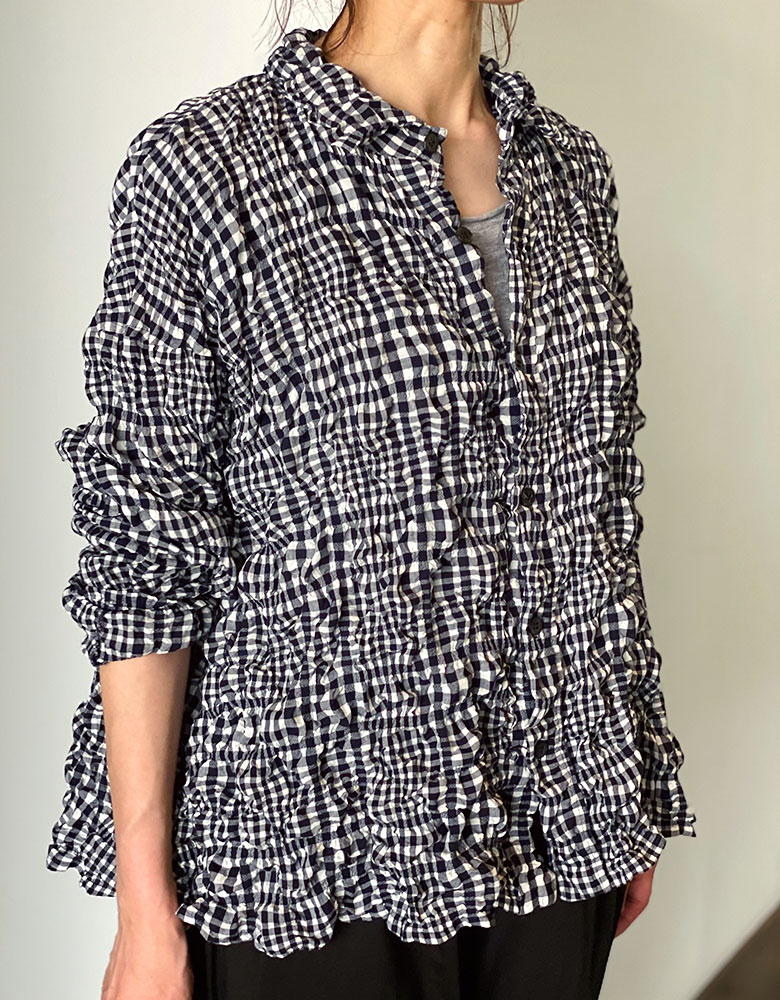 Plantationでは定番的な、テクスチャーのあるギンガムチェックシャツ。大き目のギンガムチェックと小さめのギンガムチェックを組み合わせ、コットンの柔らかな糸を用いてソフトに織り上げた生地。製品で洗いをかけることでタテヨコにチェック状に配したストレッチ糸が縮み、動きのあるシャツ素材に仕上がっています。1枚でコーディネートの主役になる万能シャツ。