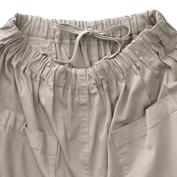 腰回りのたっぷりとしたギャザーで女性らしいシルエットが出せるワイドパンツ。サイドのタックにより裾に向かって自然に広がることで、横から見たシルエットも秀逸。体型を選ばずはきこなすことができるワイドパンツです。