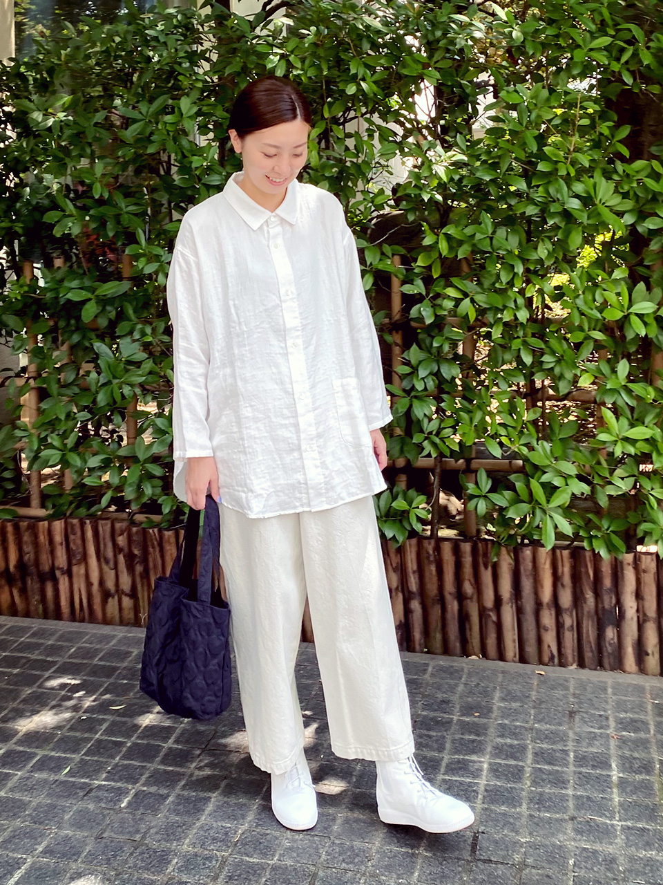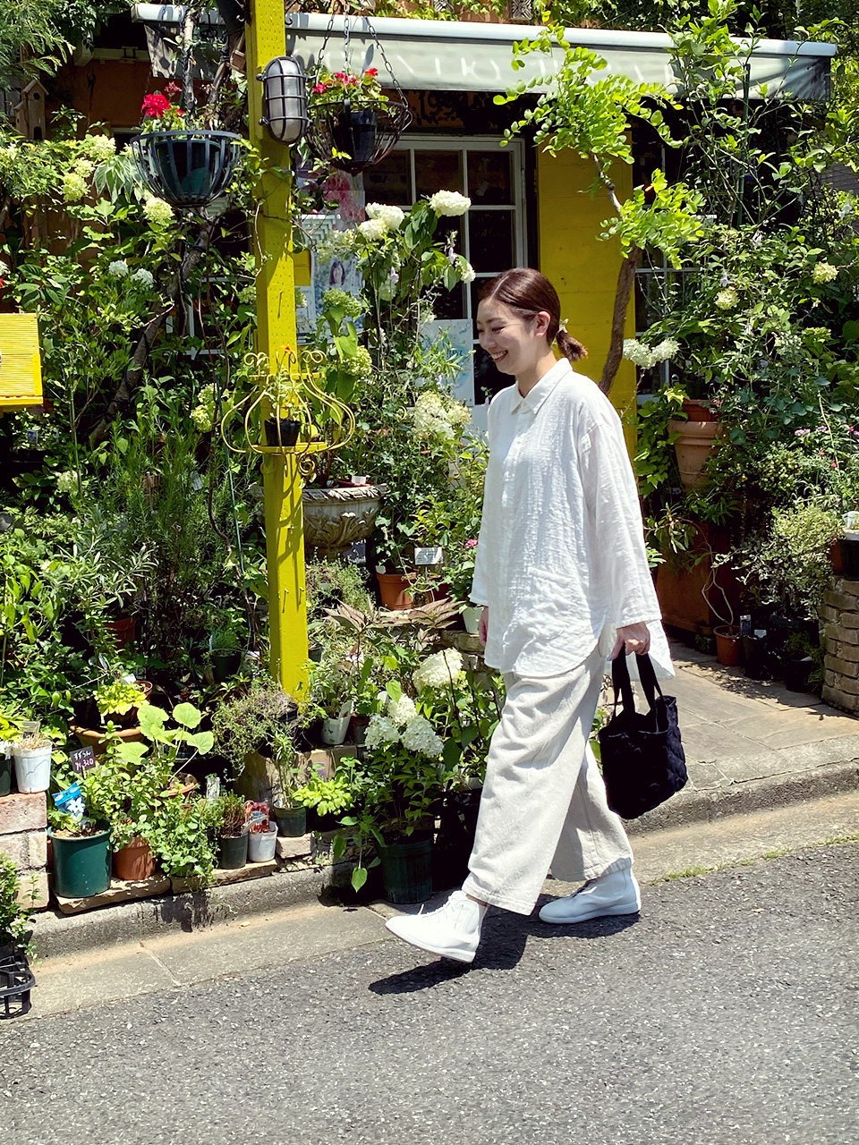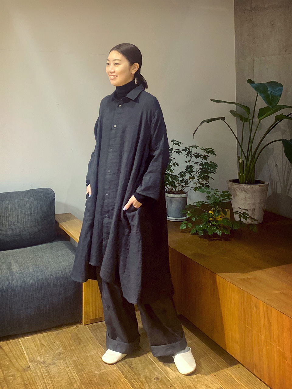 部屋着としてだけでなく、外でも心地よくきれいに着られるようなデザインになっています。